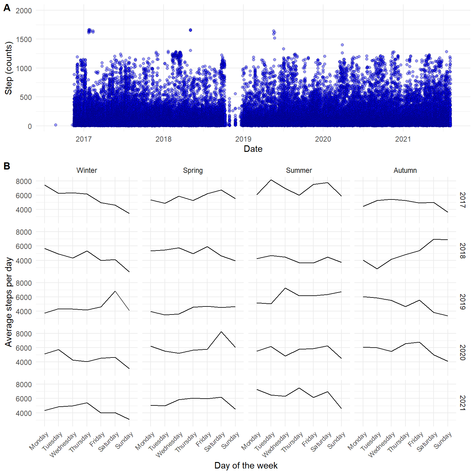 Data are everywhere, and more abundant than ever. An obvious explanation for this is the ease with which we can collect data today. In fact, most of us always walk around with a data collection device in our pockets. This device (your mobile phone) records and stores data about you throughout the day. Much of this data is readily available to us because data privacy policies regard it as personal 1. With some effort, you can extract your data from your mobile phone to explore, for example, your daily step count. I discovered that my phone has been collecting data for me since 2016, and I tend to walk fewer steps on Sundays than Saturdays (see Figure Figure 1.1).