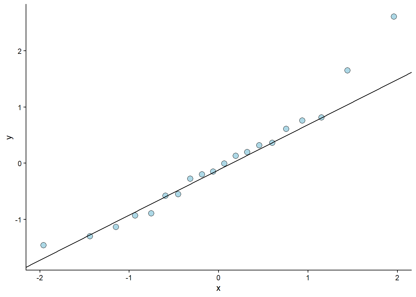 stat_qq(size = 3, fill = "lightblue", shape = 21) +