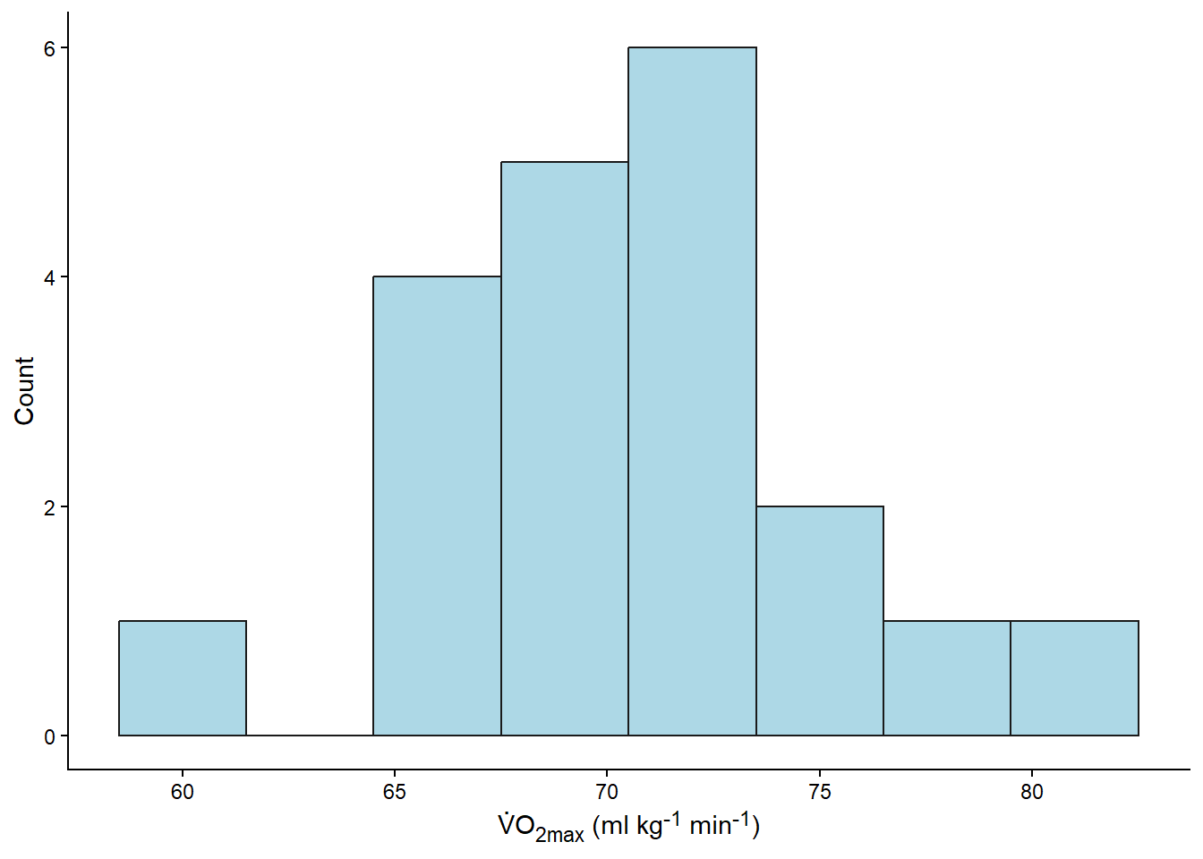 labs(x = "V̇O~2max~ (ml kg<sup>-1</sup> min<sup>-1</sup>)", y = "Count") +