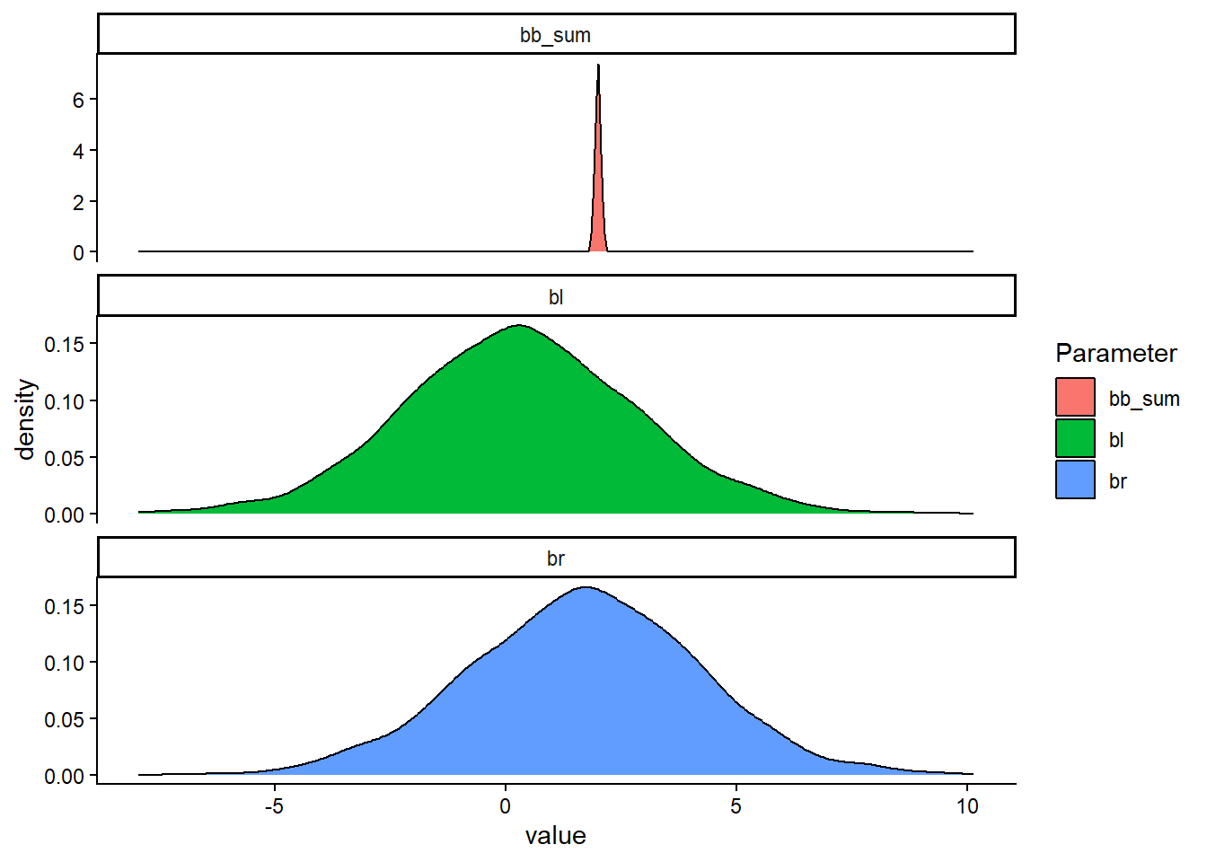 The posterior might still be the correct one. Let’s try to combine the parameter estimates (βLL and βRL) to see if their sum is what we are looking for.